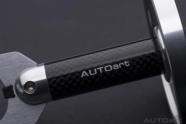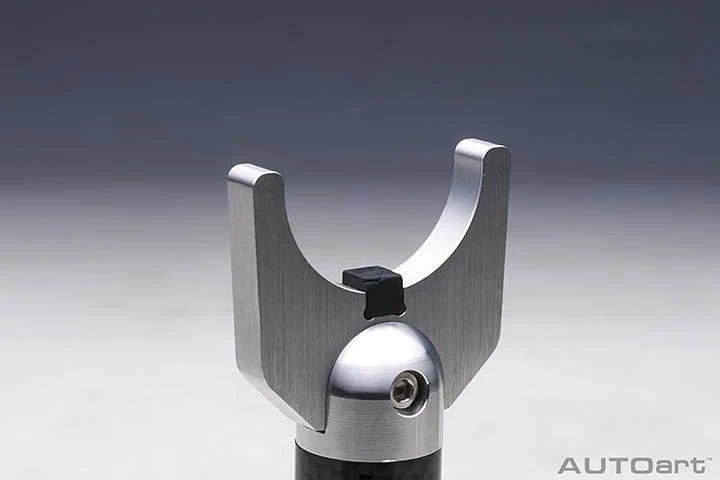 Vintage cars and vintage wine have long paired well together in the life of the automotive aficionado. When a bottle of fine red wine comes to your table, often there is sediment on the bottom that is a natural part of the aging process as well as the winemaker’s craft. To prevent this sediment from making it into your glass, the bottle must be handled carefully to avoid stirring up the wine. Connoisseurs of vino worldwide have long used holders that park the bottle at an angle that settles the sediment in a corner where it is less likely to move during handling. French waiters have for generations served red wine bottles laid over in baskets for this very reason. Further, with a bottle holder, the pourer need only raise the bottle from the bottom a few degrees to serve the wine, rather than turning a fully upright bottle almost 90 degrees to pour, which agitates the contents far more. AUTOart now gives motoring enthusiasts a way to serve their vino in a manner that preserves the flavor and purity of the wine while evoking the carbon-fiber construction of their favorite automobiles. In the AUTOart Wine Strut composite design, the bottle strut is comprised of a polished real carbon-fiber rod that recalls the lightweight materials from which today’s exotic supercars are constructed. The aluminum U-shape slot is fitted with a tiny rubber block to prevent the bottle neck from sliding. Moreover, the upright strut unscrews from the billet cut aluminum base for easy storage and transport. The base has also been designed with a convenient place to park the cork. The AUTOart Wine Bottle Strut is hand-made and is the perfect gift for the congnoscenti and gastronome in your house. Height: 110mm (4.3”). Width: 85mm (3.34”)