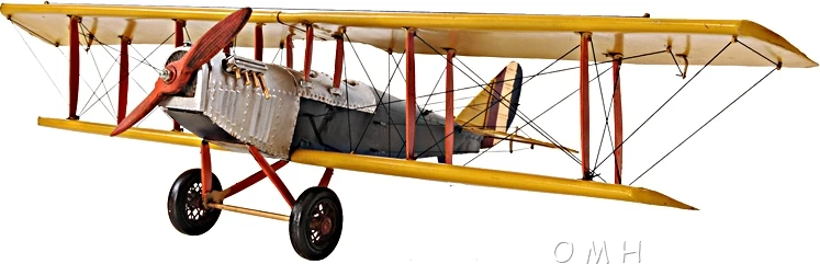 The Curtiss JN-4 “Jenny” was one of a series of “JN” biplanes built by the Curtiss Aeroplane Company of Hammondsport, New York. This fighter bi-plane was one of the most capable, faster and stronger than many of its contemporaries. This replica model of the Curtiss Jenny is handmade on a scale of 1:18. It features iron frame, wire accents, propeller and wheels. A must have for the collector and enthusiast! • 100% iron frame • Metal wheels • Wood propeller • Wheels roll • Propeller spins • Decaled insignia • Landing gear securely welded on • Includes seat